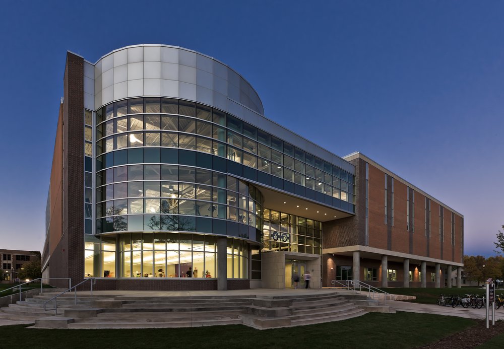 Experiential learning labs, classrooms, and faculty and administrative offices are also incorporated into the building.